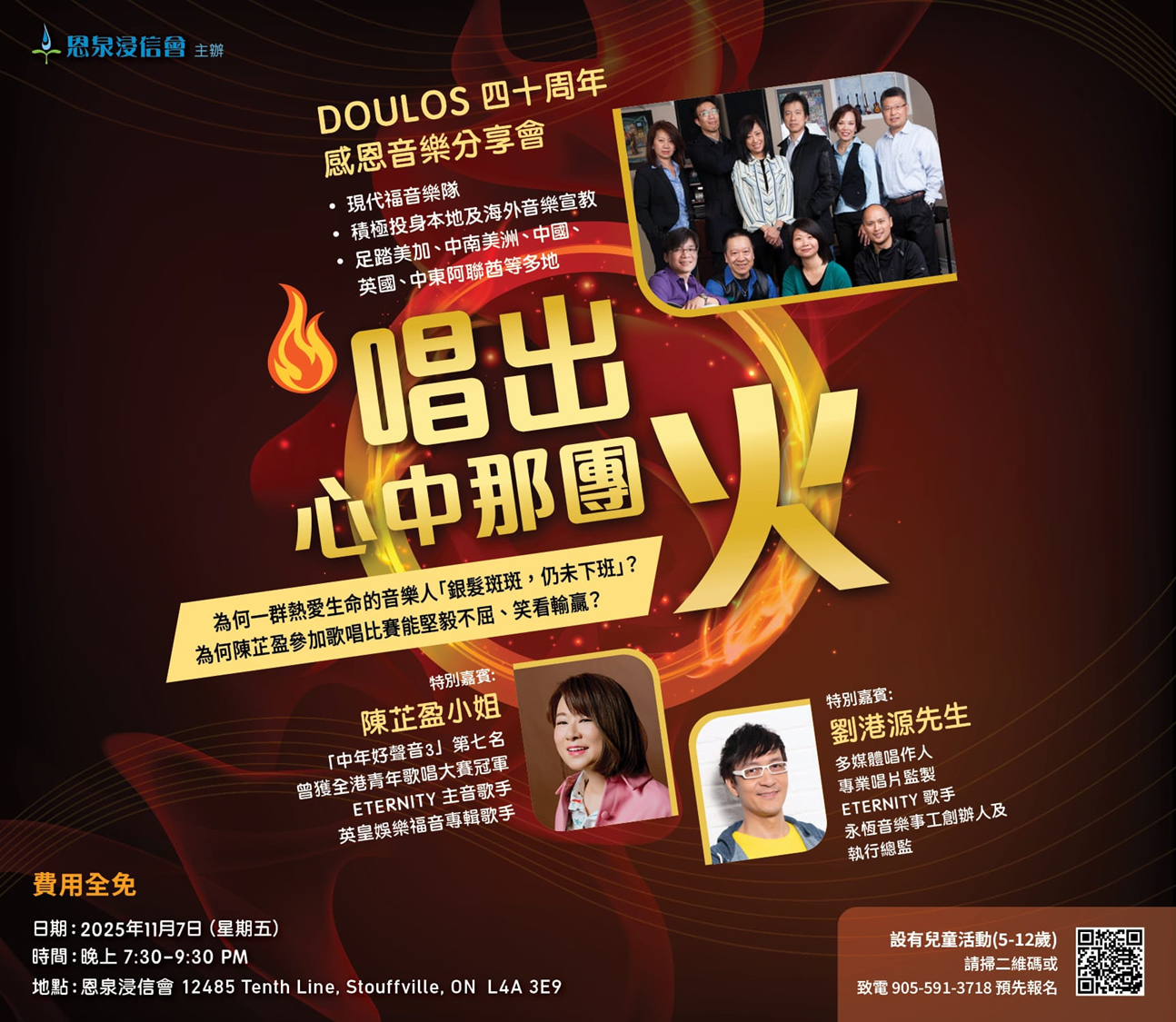 地點:恩泉浸信會, 12485 Tenth Line, Stouffville, ON. L4A 3E9