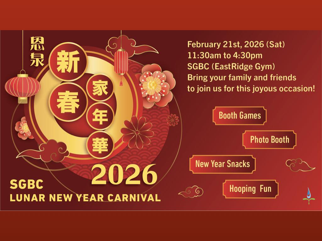 To celebrate the Lunar New Year, our church will be hosting a joyful and activity-filled family carnival on the fifth day of the Lunar New Year. Brothers and sisters of all ages are warmly invited to join, and we especially welcome you to bring along new friends to celebrate together in a fun and festive atmosphere!