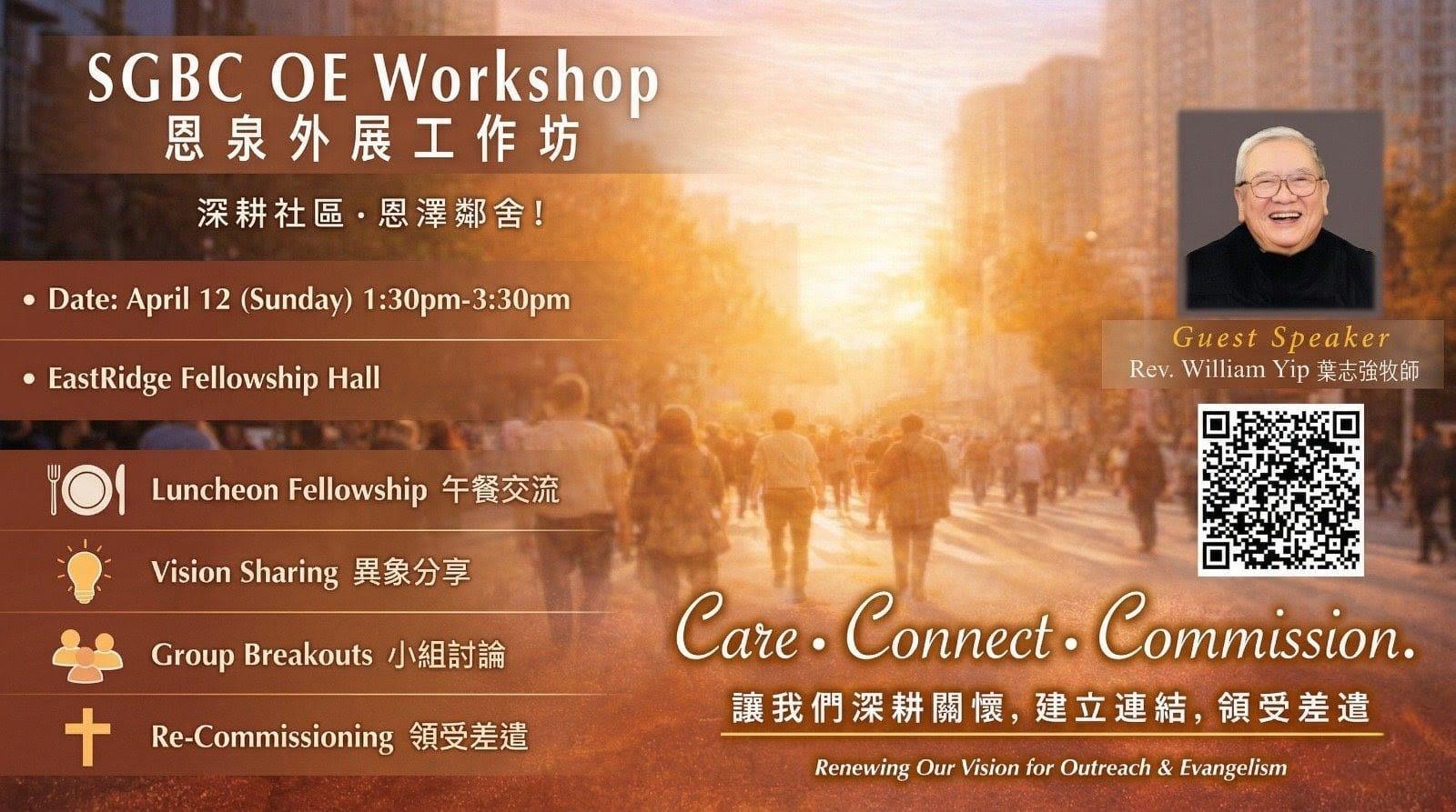 Join us as we come together to renew our vision for outreach and evangelism. Through fellowship, sharing, and discussion, let’s seek God’s direction and be commissioned anew.